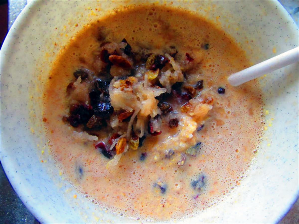 Jabuke, brusnice i grožđice dodati, promiješati.