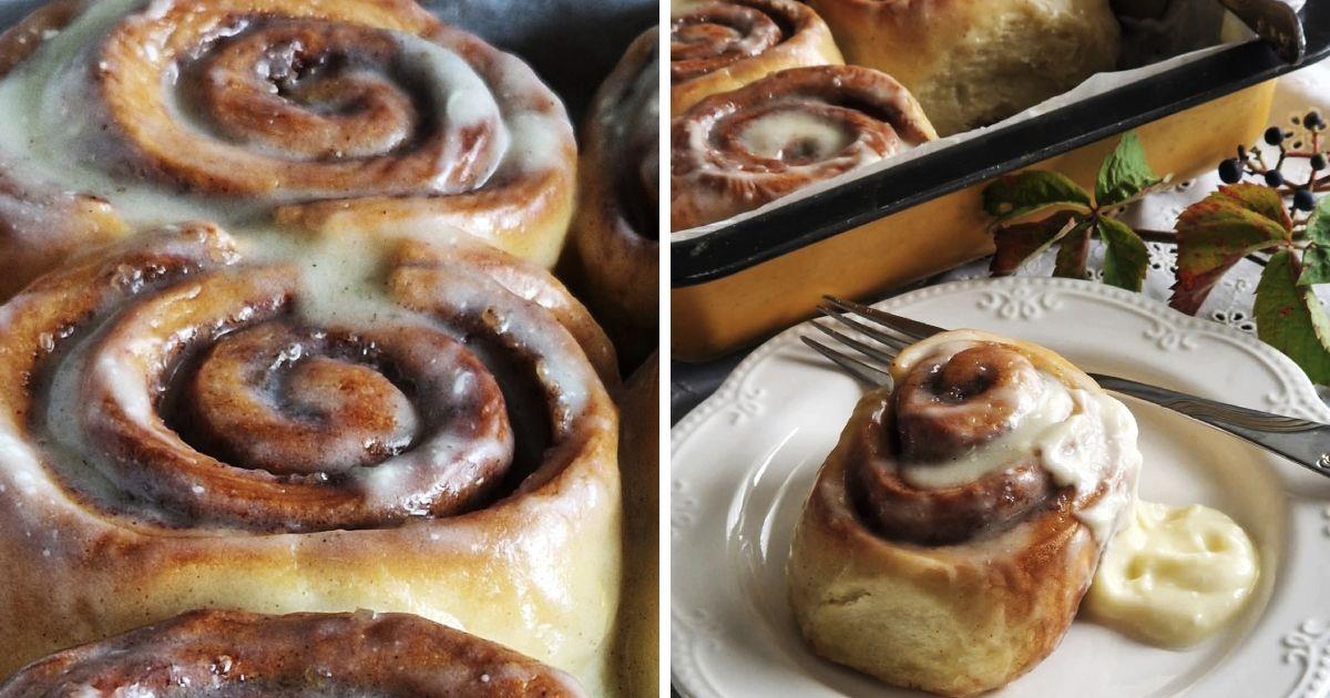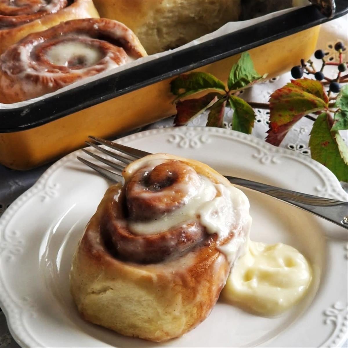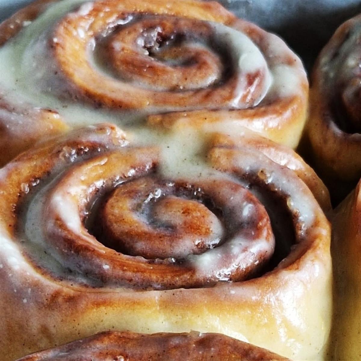 Napravite glazuru od krem sira i njome premažite gotove cimet rolice.