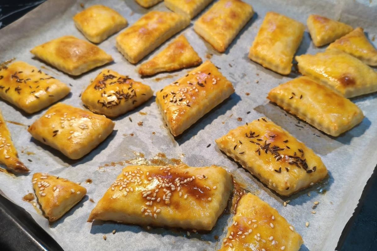 Pogačice premažite razmućenim jajetom i pospite sezamom ili kimom te po želji posolite. Pecite na 200 stupnjeva dok ne dobiju zlatnu boju.