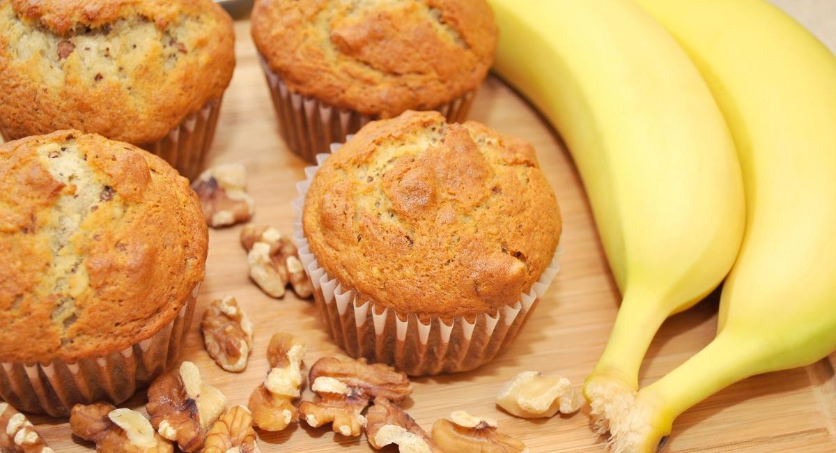 U posudu dodajte banane, prašak za pecivo, jaja, maslac od kikirikija i borovnice.