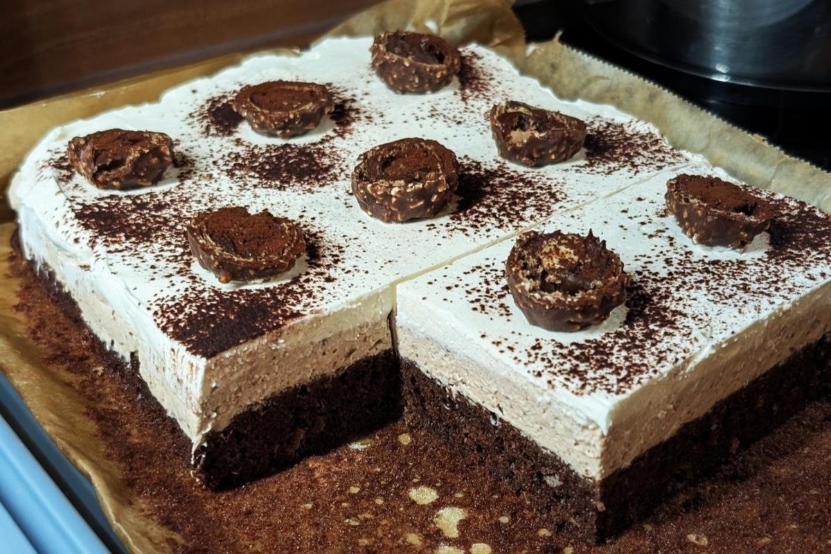 Dodajte sitno nasjeckane Ferrero Rocher kuglice i promiješajte.