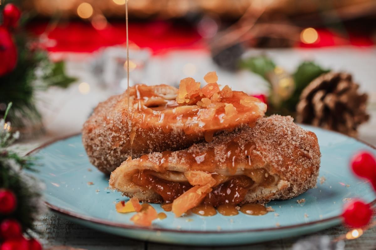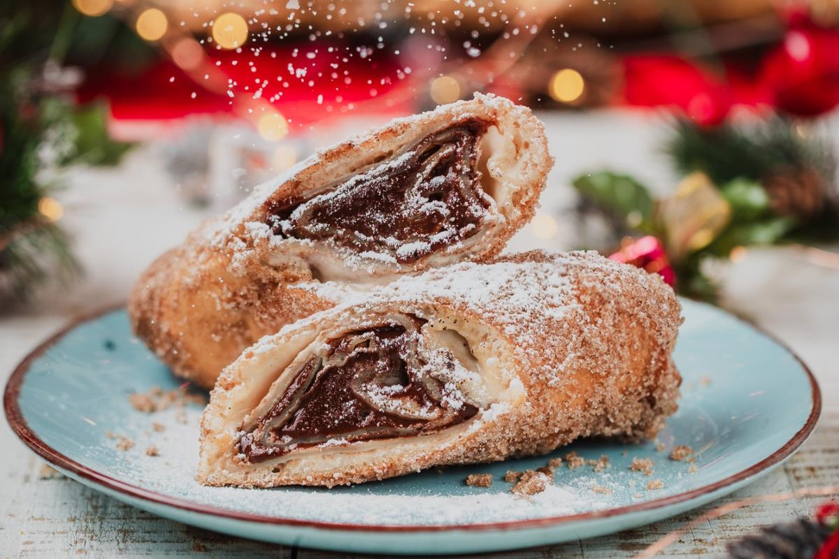 Pržene palačinke uvaljajte u mix (50:50) kristal šećera i šećera u prahu te dodajte cimet po želji. Poslužite dok su još tople i prelijte umakom od karamele/mandarine.