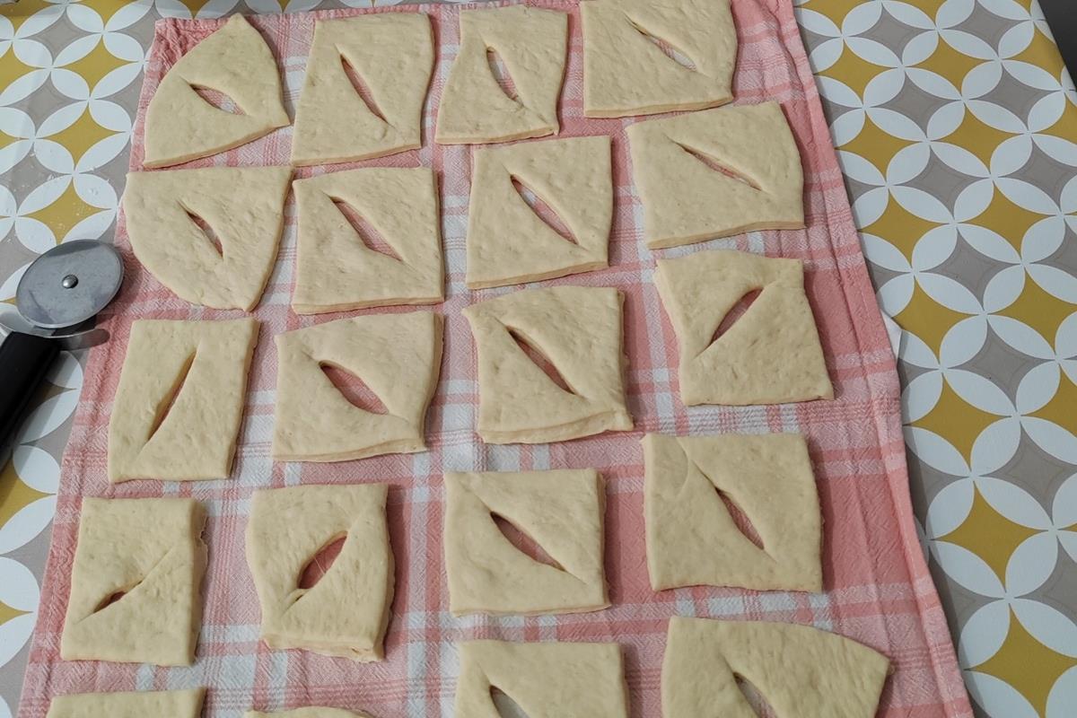 Tijesto razvaljajte, izrežite u željeni oblik i prekrijte da se diže još pola sata.