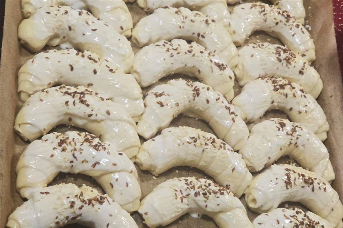 Tako složene kiflice pokrijte još 20 minuta pa ih premažite grčkim ili običnim jogurtom ili običnim jogurtom i pospite sjemenkama.