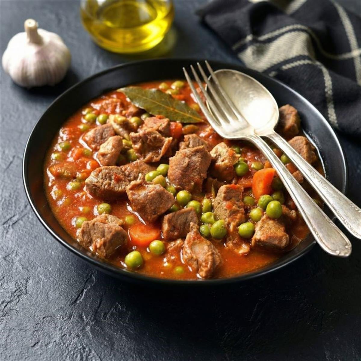 Dodajte grašak i kuhajte još 15–20 minuta, dok meso ne omekša.