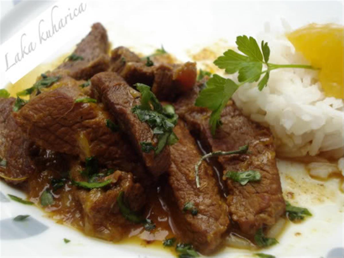 Peršinom posipati gotovo meso, poslužiti s prilogom od riže ili couscousom, te zelenom salatom.