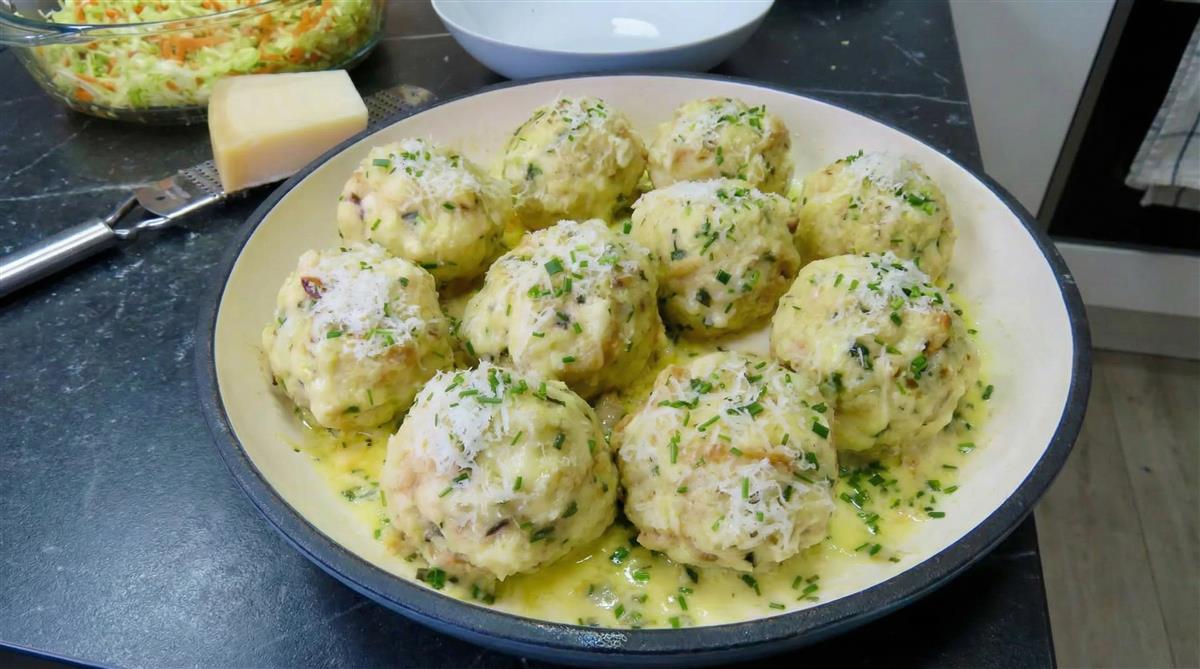 Otopite maslac na tavici. Dodajte knedle i pržite ih sa svih strana 6 do 7 minuta. Pospite vlascem i ribanim parmezanom i poslužite.