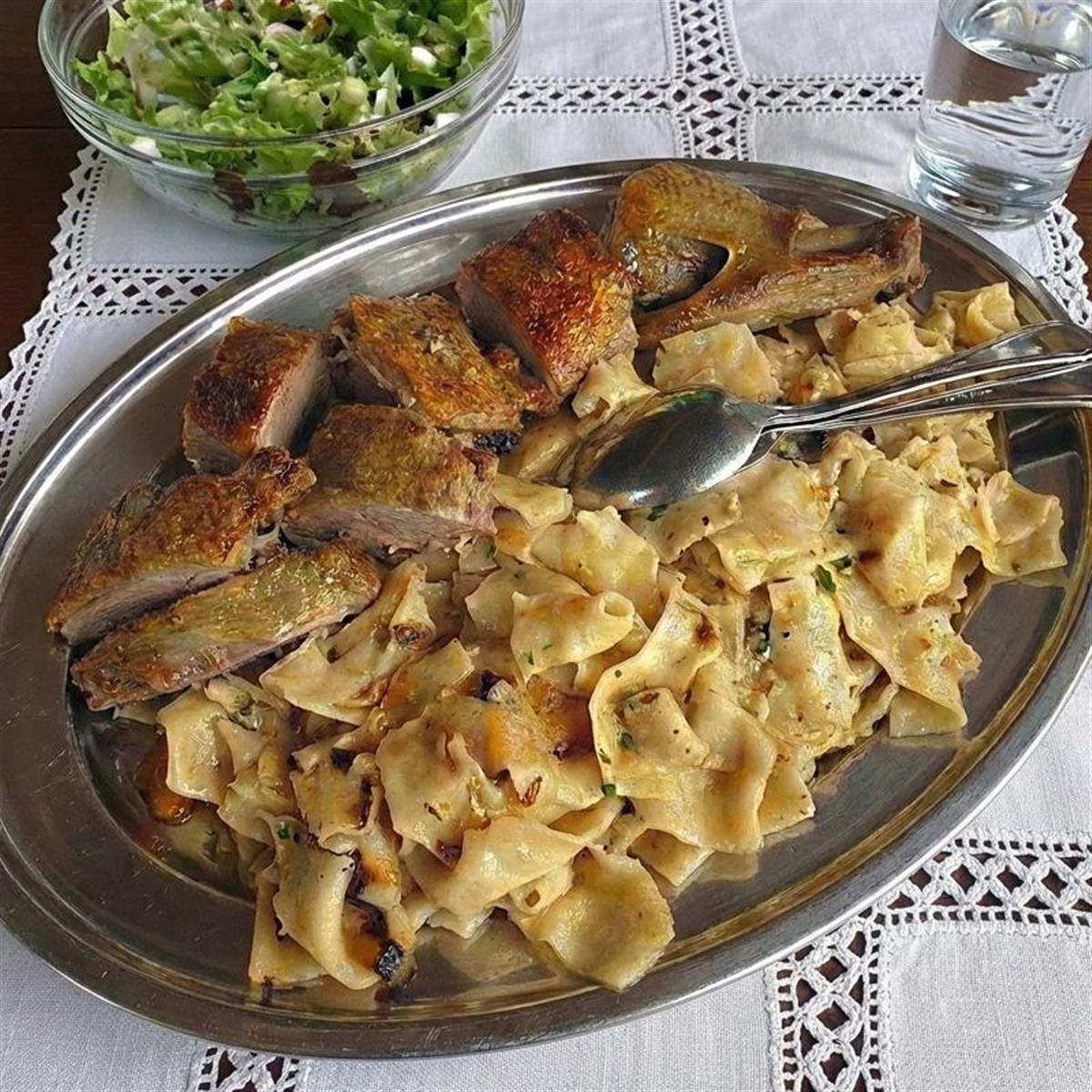 Svakih 30 minuta patku prelijte sokom iz tepsije. Nakon 90 minuta pažljivo odlijte dio masnoće u posudicu (trebat će vam za mlince), ostavite u tepsiji dovoljno da se patka i dalje peče sočno.