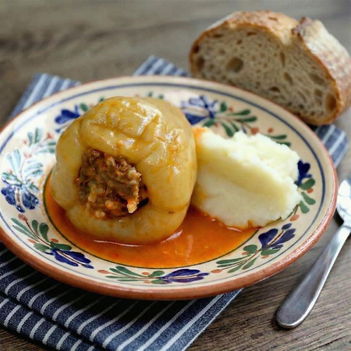 Na tanjur stavite pire, uz njega punjenu papriku. Prelijte umakom od rajčice i poslužite odmah.