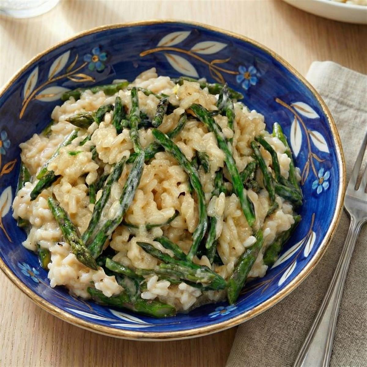Maknite s vatre, umiješajte maslac i sir. Dodajte papar, peršin/vlasac i po želji limunovu koricu. Vrhove šparoga umiješajte na samom kraju (dio ostavite za vrh) i poslužite odmah.