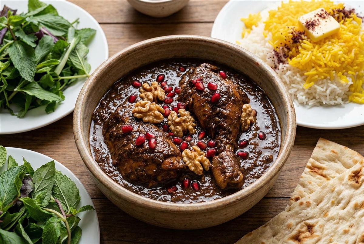U loncu zagrijte ulje i pecite meso dok ne dobije boju. Dodajte mljevene orahe i kratko propržite s mesom. Ulijte sok od nara, dodajte šećer, posolite i popaprite.