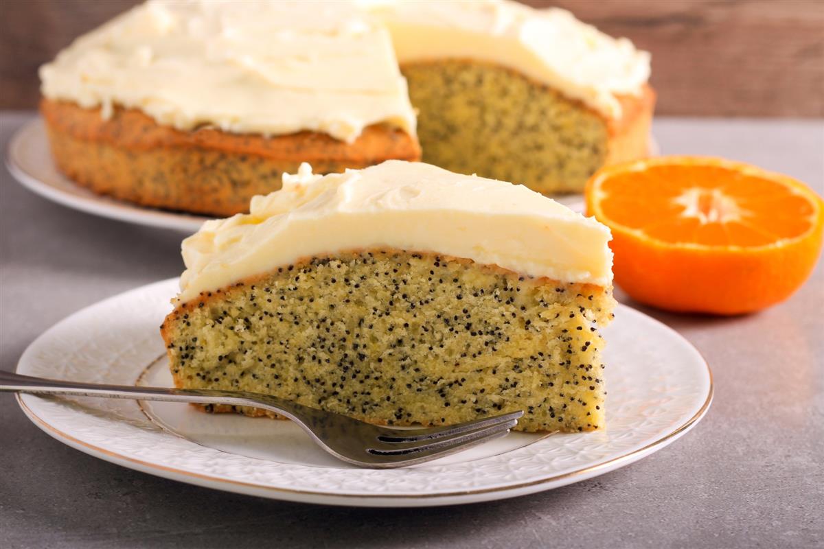 U većoj posudi umutite jaja, šećer i vanilin šećer dok smjesa ne postane svijetla i pjenasta. Dodajte ulje i mlijeko pa lagano promiješajte. Umiješajte mljeveni mak i naribanu koricu naranče.