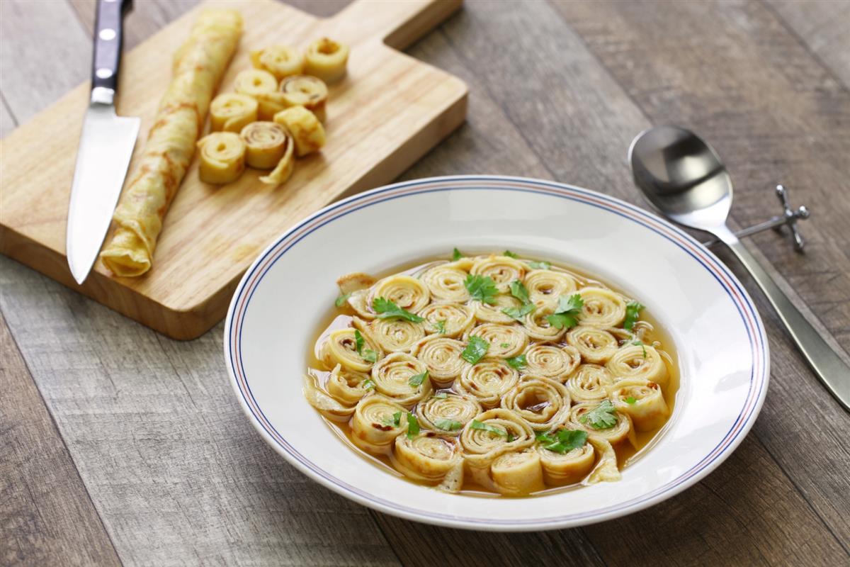 U tanjure s juhom dodajte narezane trakice palačinki i poslužite.